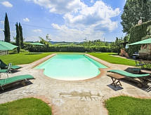 Casa Tara ist ein hübscher kleiner ehemaliger Heuschober, der in Rücksicht auf die typische Bauweise der Toskana restauriert wurde. Ideale Ausgangslage, nicht nur, um das Chianti-Gebiet und die Region Casentino, sondern auch die bedeutendsten Kulturstädte der Toskana zu besuchen. Landsitz Tara. 15 km vom Zentrum von Arezzo, 35 km vom Zentrum von Siena, 50 km vom Zentrum von Firenze. Zur Mitbenutzung: Garten (eingezäunt), Schwimmbad (12 x 6 m, 110 - 250 cm tief, saisonale Verfügbarkeit: 09.Mai. - 26.Sep.) mit Innentreppe. Aussendusche, Tischtennis, Grill. Zur Alleinbenutzung: Laube, Terrasse, Gartenmöbel, Grill. Im Hause: Zentralheizung, Waschmaschine. Parkplatz beim Haus auf dem Grundstück. Lebensmittelgeschäft 200 m, Restaurant 2 km, Bahnstation Laterina 2 km, Thermalbad Rapolano Terme 37 km. Nahe gelegene Sehenswürdigkeiten: Castiglion Fiorentino 31 km, Radda In Chianti 36 km, Cortona 43 km. Bitte beachten: Die Residenz wird durch elektrische Tore geschlossen. Der Besitzer wohnt auf dem gleichen Grundstück. Eigentümer hat einen Hund.