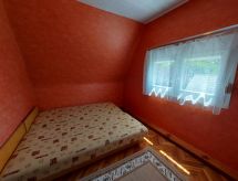 Referenz-Nr.Violett, 4-Zimmer-Haus 60 m2 auf 2 Stockwerken. Zweckmässig eingerichtet: Wohn-/Esszimmer mit Sat-TV und DVD. 1 Zimmer mit 1 Bett. Küche (Backofen, 4 Flammen, Toaster, Mikrowelle, elektrische Kaffeemaschine) mit Esstisch. Dusche, sep. WC. Keine Heizmöglichkeit. Obergeschoss: 2 abgeschrägte Zimmer, jedes Zimmer mit 2 Betten. Ausgang zum Balkon. Keine Heizmöglichkeit. Parkettboden. Balkon, Terrasse. Terrassenmöbel, Gartengrill (mobil), Liegestühle (2). Zur Verfügung: Babybett (extra). Internet (Wireless LAN, gratis). Bitte beachten: Nichtraucher-Haus. EG19015531