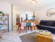 Referenz-Nr.2-Zimmer-Wohnung 46 m2, im Erdgeschoss. Schön eingerichtet: Wohn-/Esszimmer mit 1 Doppeldiwanbett (140 cm, Länge 190 cm), TV (Flachbildschirm). 1 Zimmer mit 1 franz. Bett (140 cm, Länge 190 cm). Offene Küche (4 Glaskeramikplatten, Toaster, Wasserkocher, Mikrowelle, Tiefkühler, elektrische Kaffeemaschine, Kapseln für die Kaffeemaschine (Senseo)). Dusche, sep. WC. E-Heizung. Zur Verfügung: Waschmaschine, Bügeleisen, Haartrockner. Internet (Wireless LAN, extra). Bitte beachten: Nichtraucher-Unterkunft. Rauchmelder. Inserat einer Privatperson nach Artikel 155, IV, CGI. 641220023083E