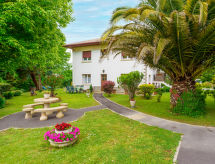 Ahetze 1 km von Guéthary: Zweifamilienhaus Lande Gaina, auf 2 Stockwerken, umgeben von Bäumen und Feldern. Am Ortsrand Guéthary, ruhige Lage, 2.3 km vom Meer, 2.3 km vom Strand. Zur Alleinbenutzung: Garten. Einkaufsgeschäft 1.7 km, Lebensmittelgeschäft 1.7 km, Supermarkt 3.7 km, Einkaufszentrum 3.7 km, Restaurant 1.7 km, Bar 2 km, Bäckerei 1.7 km, Café 1.9 km, Fahrradverleih 1.7 km, Zentrum zu Fuss in 20 Minuten erreichbar, Bushaltestelle Eglise 1.1 km, Bahnstation Guéthary 1.7 km, Sandstrand Plage du Port Guéthary 2.3 km (klein), Thermalbad Thalmar 7.4 km. Sporthafen 1.7 km, Golfplatz (18 Loch) 7.4 km, Surfschule 1.7 km. Nahe gelegene Sehenswürdigkeiten: Musée Saraleguinea 1.3 km, Port de Guéthary 2 km, Bid'a Parc 2.8 km, Pointe Sainte Barbe 6.8 km, Cité de l'Ocean 6.9 km, Aquarium de Biarritz 9.7 km. Wandergebiete: La Rhune 15 km. Bitte beachten: Eigentümer hat einen Hund.