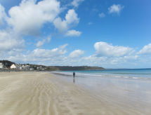 Einfamilienhaus Chante-Brise, umgeben von Bäumen und Feldern. 3 km vom Zentrum von Plérin-sur-Mer, 5 km vom Zentrum von St. Brieuc, in einem Wohnquartier, 1 km vom Meer. Zur Alleinbenutzung: Garten 2'800 m2 (eingezäunt) mit Pflanzen und Bäumen, Wiese, Obstgarten, Parkplatz auf dem Grundstück. Supermarkt 2 km, Bushaltestelle 2 km, Sandstrand Plage des Rosaires 1 km, Felsstrand 3 km, Hallenbad 5 km. Sporthafen 6 km, Golfplatz (18 Loch) 20 km, Tennis 900 m.