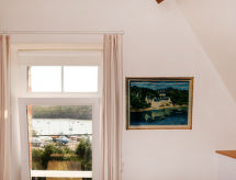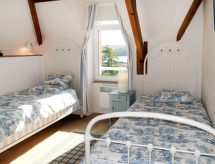 Referenz-Nr.Le Clos du Port 2, 3-Zimmer-Wohnung 40 m2 im 1. Stock. Schön eingerichtet: Wohn-/Esszimmer mit Esstisch und TV. 1 Zimmer mit 1 franz. Bett (140 cm, Länge 190 cm). 1 Zimmer mit 2 Betten (90 cm, Länge 190 cm). Kleine, offene Küche (2 Glaskeramikplatten, Toaster, Wasserkocher, elektrische Kaffeemaschine, Kombinationsmikrowelle). Dusche, sep. WC. E-Heizung. Terrasse. Terrassenmöbel. Zur Verfügung: Internet (Wireless LAN, gratis). Bitte beachten: Nichtraucher-Unterkunft. Rauchmelder.