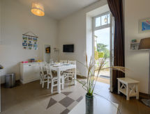 Schönes, historisches Schloss Le Château de Kergonano, auf 4 Stockwerken, aus dem 17. Jahrhundert, umgeben von Bäumen und Feldern. 2 Häuser in der Residenz. 38 Wohnungen in der Residenz. 1.8 km vom Zentrum von Baden, 14 km vom Zentrum von Vannes, ausserhalb des Ortes, 10 km vom Zentrum von Auray, 3.5 km vom Meer, im Grünen. Zur Mitbenutzung: Park 2 ha, gepflegter Garten mit Rasen und Bäumen, Schwimmbad eingezäunt (12 x 6 m, saisonale Verfügbarkeit: 15.Mai. - 30.Sep.). In der Anlage: Waschmaschine (extra) (zur Mitbenutzung). Parkplatz auf dem Grundstück. Lebensmittelgeschäft 1.8 km, Supermarkt 700 m, Restaurant 3 km, Bäckerei 700 m, Bushaltestelle Baden centre 1.5 km, Sandstrand Sept Iles 3.5 km, Thermalbad Thalazur Carnac. Sporthafen 6 km, Golfplatz (18 Loch) 2 km, Segelschule 6 km, Reitstall 4 km. Nahe gelegene Sehenswürdigkeiten: Le Golfe du Morbihan, Les îles du Golfe du Morbihan, Auray 10 km, Vannes 15 km, Presqu'ile de Quiberon 30 km, Belle île en Mer, Houat Hoedic. Wandergebiete: Chemins des Douaniers, Le Tour de Bretagne GR34. Die Schlüsselübergabe findet bei der Agentur Interhome in Le Bono statt, 4 km.