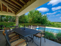 Schöne Villa Remington, auf 2 Stockwerken. Im Weiler Baredine, 4 km vom Zentrum von Buje, ruhige, sonnige, erhöhte Lage, 17 km vom Meer. Zur Alleinbenutzung: Grundstück 1'020 m2, schöner Garten, Schwimmbad eckig (8 x 4 m, 100 - 150 cm tief, saisonale Verfügbarkeit: 25.Apr. - 13.Okt.) mit Innentreppe. Grill. Im Hause: Internetzugang, Waschmaschine. Parkplatz beim Haus auf dem Grundstück. Einkaufsgeschäft 4 km, Restaurant 1 km, Bushaltestelle 4 km, Bahnstation 33 km, Kieselstrand 17 km. Tennis 16 km, Sportzentrum 16 km, Wanderwege ab Haus 1 km, Radweg 1 km. Nahe gelegene Sehenswürdigkeiten: Aquapark 19 km. Der Besitzer akzeptiert keine Jugendgruppen. Die Nachbarschaft ist sehr lärmempfindlich. Ruhe und gutes Benehmen wird erwartet.
