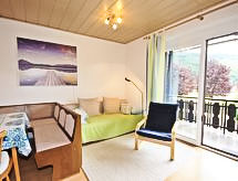 Referenz-Nr.Annemarie, 3-Zimmer-Wohnung 59 m2 im 1. Stock. Objekt geeignet für 4 Erwachsene. Geräumig, gemütlich eingerichtet: Eingang mit sep. WC. Wohn-/Esszimmer mit Sat-TV (Flachbildschirm), CD, Stereoanlage und DVD. Ausgang zum Balkon. 1 Doppelzimmer. 1 Zimmer mit 2 Betten (90 cm, Länge 190 cm). Offene Küche (Backofen, Geschirrspüler, 4 Glaskeramikplatten, Tiefkühler). Dusche. Grosser Balkon 38 m2, grosser Gartensitzplatz. Balkonmöbel, Abstellkammer. Schöne Sicht auf den See und die Berge. Zur Verfügung: Waschmaschine. Internet (Wireless LAN, gratis). Parkplatz. Bitte beachten: geeignet für Familien. Nichtraucher-Unterkunft. Rauchmelder.