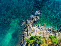 Schönes, gemütliches Zweifamilienhaus Emil. Oberhalb von Lovran, ausserhalb des Ortes, alleinstehende, sonnige, erhöhte Lage, 1 km vom Meer, 1 km vom Strand, im Grünen. Zur Mitbenutzung: Grundstück 1'500 m2, Garten mit Rasen und Bäumen, Obstgarten, Liegewiese. Sitzplatz. Zur Alleinbenutzung: Grill. Im Hause: Internetzugang, Zentralheizung (extra). Parkplatz beim Haus auf dem Grundstück. Einkaufsgeschäft, Restaurant 500 m, Bushaltestelle 1 km, Kieselstrand 1 km, Steinstrand 1 km, Felsstrand 1 km, Strandbad 1 km.
