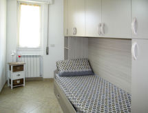 Referenz-Nr.Annalisa (SLR132), 3-Zimmer-Wohnung 53 m2, im Erdgeschoss. Hell, renoviert im Jahre 2017, zweckmässig eingerichtet: Wohn-/Schlafzimmer mit 1 Doppeldiwanbett (160 cm), Esstisch, Sat-TV und CD. Ausgang zur Terrasse. 1 Zimmer mit 1 Doppelbett (160 cm). Ausgang zur Terrasse. 1 Zimmer mit 1 Doppelwandklappbett (2 x 80 cm). Offene Küche (Backofen, Geschirrspüler, 4 Flammen, Toaster, Wasserkocher, Mikrowelle, Tiefkühler, elektrische Kaffeemaschine). Dusche/Bidet/WC. G-Heizung. Grosse Terrasse. Terrassenmöbel, Gartengrill (mobil), Liegestühle (4). Eingeschränkte Sicht auf die Ortschaft und das Meer. Zur Verfügung: Waschmaschine, Bügeleisen, Kinderhochstuhl, Babybett. Internet (Wireless LAN, gratis). Parkplatz (1 Auto). Bitte beachten: Maximal 1 Haustier/Hund erlaubt. Eigener Eingang. IT008054C2OPYM57XE