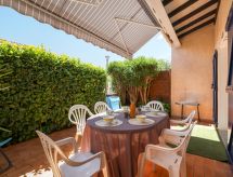 Residenz Les mas Bleus. Im Ortsteil Les Capellans, 1 km vom Meer, 1 km vom Strand. Zur Mitbenutzung: Schwimmbad (65 - 130 cm tief, saisonale Verfügbarkeit: 01.Jul. - 31.Aug.). Einkaufsgeschäft 450 m, Supermarkt 1 km, Restaurant, Bushaltestelle 450 m, Bahnstation Elne 7 km, Sandstrand Plage du pont tournant 1 km. Sporthafen 1.7 km, Golfplatz (27 Loch) 4.5 km, Segelschule 1.2 km, Minigolf 3.5 km, Reitstall 1.6 km, Sportzentrum 1 km. Nahe gelegene Sehenswürdigkeiten: Aqualand 2.3 km, Centre Commercial 400 m.