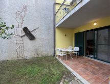 Referenz-Nr.Green House, 2-Zimmer-Wohnung 45 m2, im Erdgeschoss. Einfach und gemütlich eingerichtet: Wohn-/Esszimmer mit Schiebetür mit 1 Doppeldiwanbett (140 cm, Länge 190 cm), Esstisch und TV. Ausgang zum Garten. 1 Doppelzimmer. Ausgang zur Terrasse. Kochnische (Backofen, 4 Flammen, Tiefkühler). Dusche/Bidet/WC. Boiler (50 Liter). Keine Heizmöglichkeit. Terrasse. Terrassenmöbel. Zur Verfügung: Waschmaschine, Bügeleisen, Babybett bis 2 Jahre, Haartrockner. Internet (Wireless LAN, gratis). Bitte beachten: Nichtraucher-Haus. IT091085C2000P2218